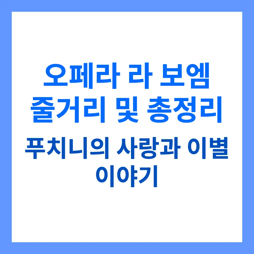라 보엠은 단순한 비극이 아니라, 청춘의 빛과 그림자를 담아낸 감성적인 작품입니다. 첫사랑의 설렘, 예술가의 열정, 가난의 고통, 그리고 사랑하는 이를 잃는 슬픔이 절묘하게 어우러져 있습니다. 한 번 감상하면 결코 잊을 수 없는 아름다운 음악과 이야기로, 오페라를 처음 접하는 사람들에게도 강력히 추천할 만한 명작입니다.
