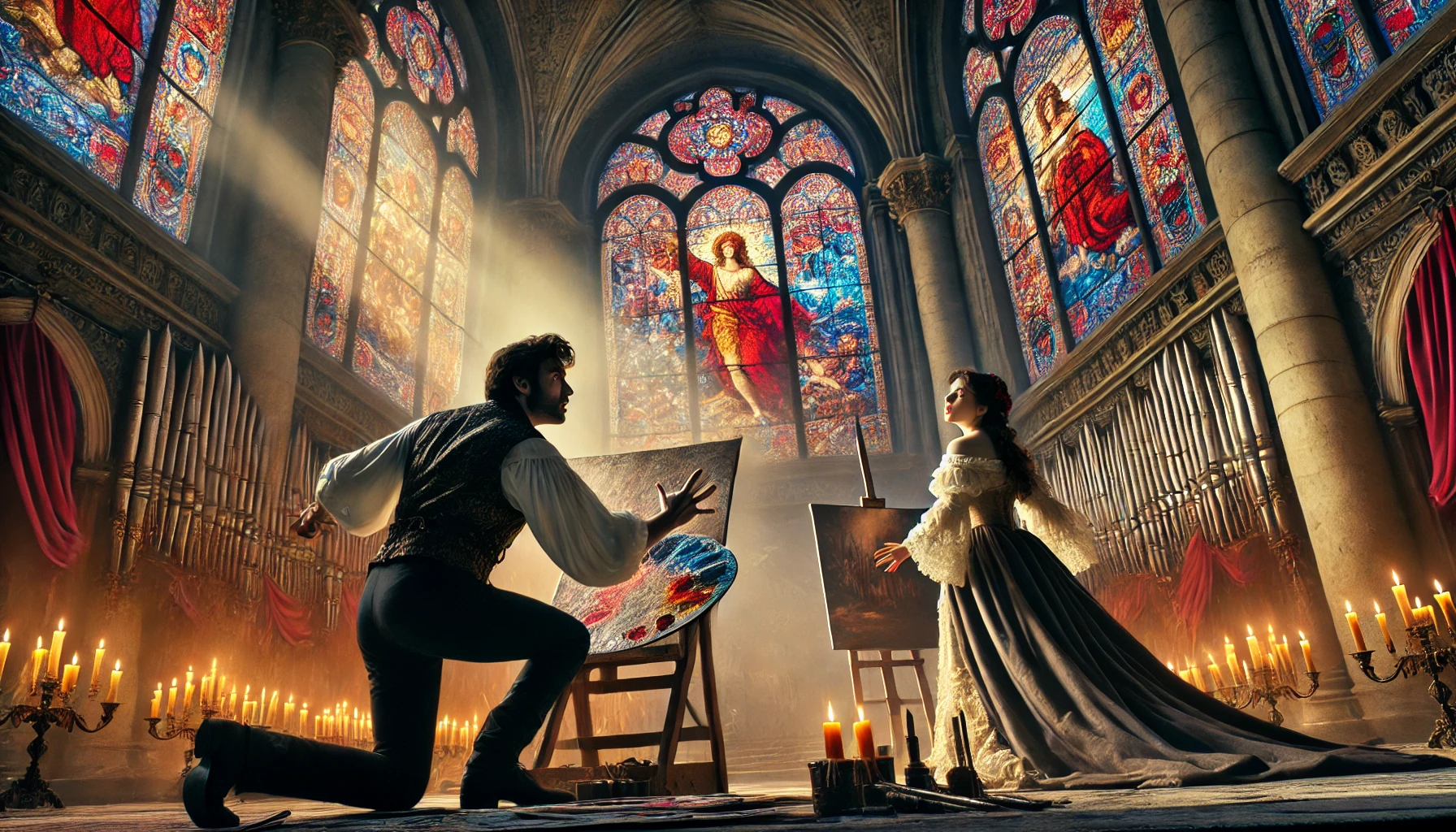 카바라도시의 연인인 오페라 가수 플로리아 토스카가 나타나며 이야기는 복잡해집니다. 토스카는 질투심에 카바라도시를 추궁하며, 그림 속 여인의 모습을 두고 의심을 품습니다. - 스카르피아의 음모