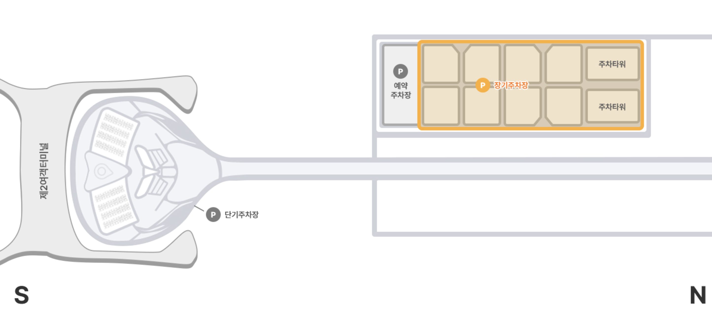 2. 장기 주차장 (T1, T2 동일)